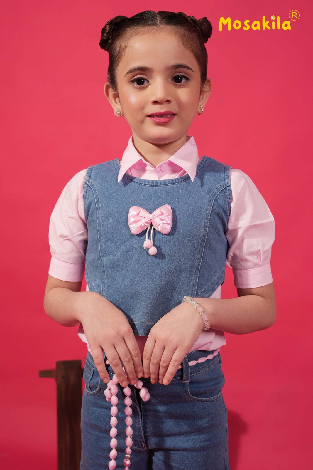 Denim Blossom Cargo Co-ord is a stylish two-piece set featuring a soft pink shirt and a denim sleeveless top with a cute bow accent. Paired with comfortable cargo pants decorated with multiple pockets and a trendy tassel belt, this outfit gives your little girl the perfect mix of cute and cool fashion.
